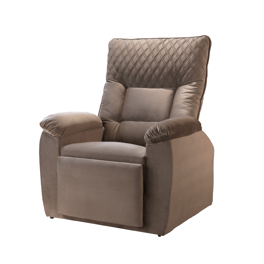 -Encosto e braços em flocos de espuma e camada de fibra de poliéster siliconada.